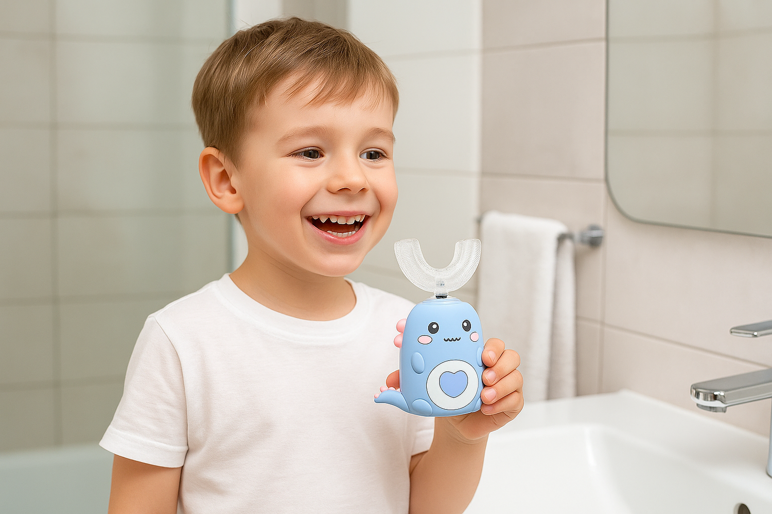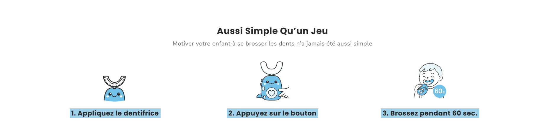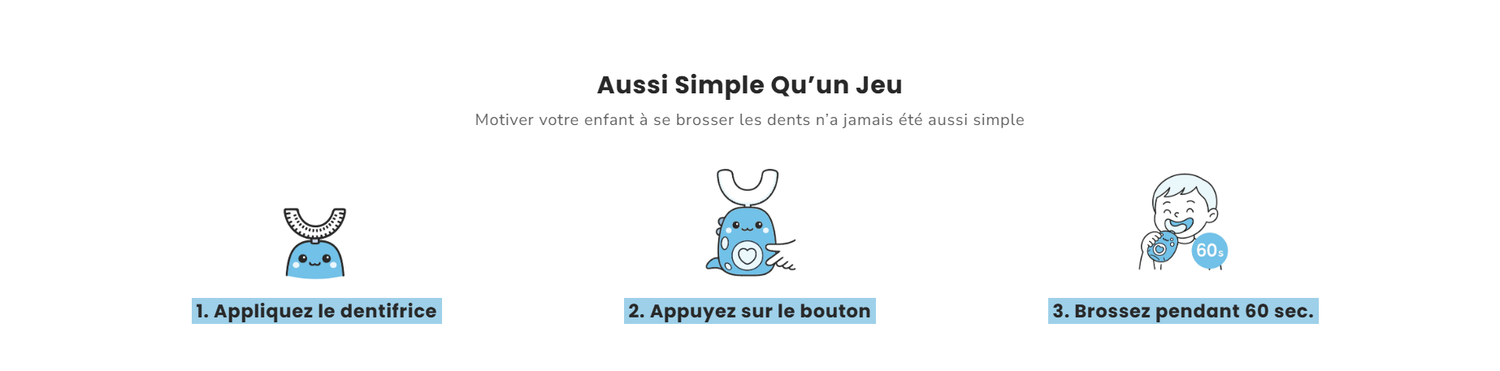 Avec son design U rigolo et son nettoyage express de 60 secondes, votre enfant adore maintenant se brosser les dents !